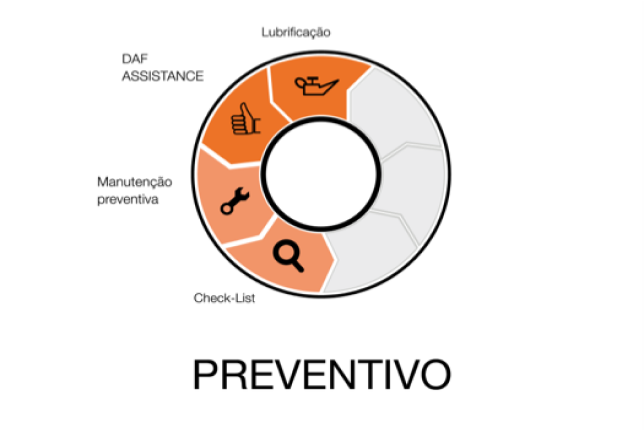 O DAF Multisuporte Preventivo oferece cobertura de todas as revisões preventivas, checklists completos incluindo mão de obra e revisão de cubos e eixos. O plano preventivo também oferece acesso total ao sistema de gestão de frotas DMS Conectado.